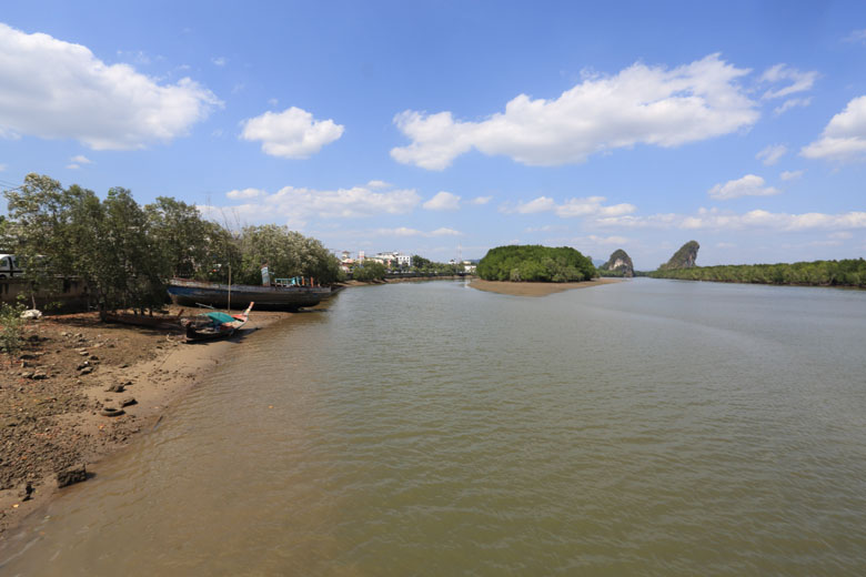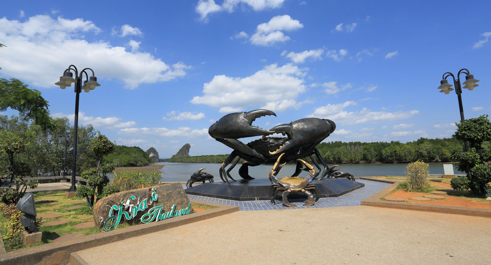 | A close-up. A huge crab and a kid. | Krabi river in front of the sculpture. Very wide space. | |