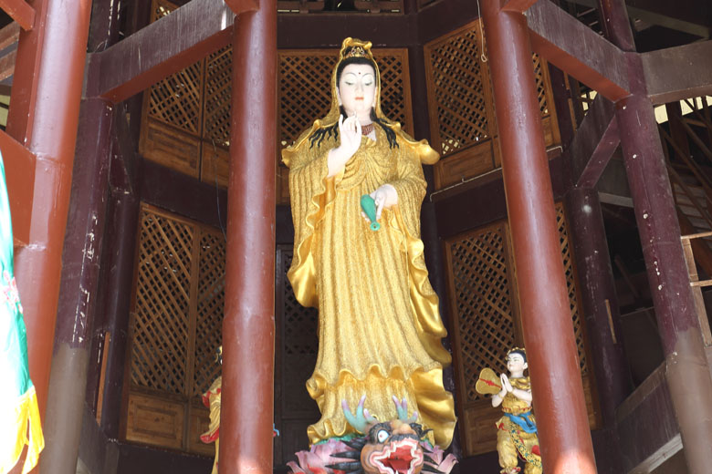 | A Buddha statue, Kannon - Goddess of Mercy, is housed. | They have electric chanting a Buddhist sutra machines on the way. | Other Buddha statues can be seen after going up stairs. |