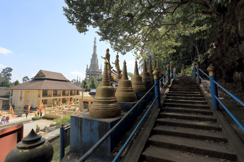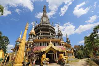 | You can go to a mediation center by going up long stairs near the main hall. | A huge chedi around the entrance of the temple. Still under construction. |