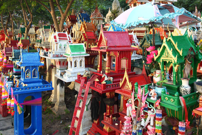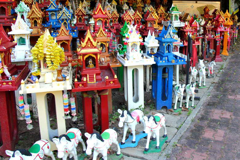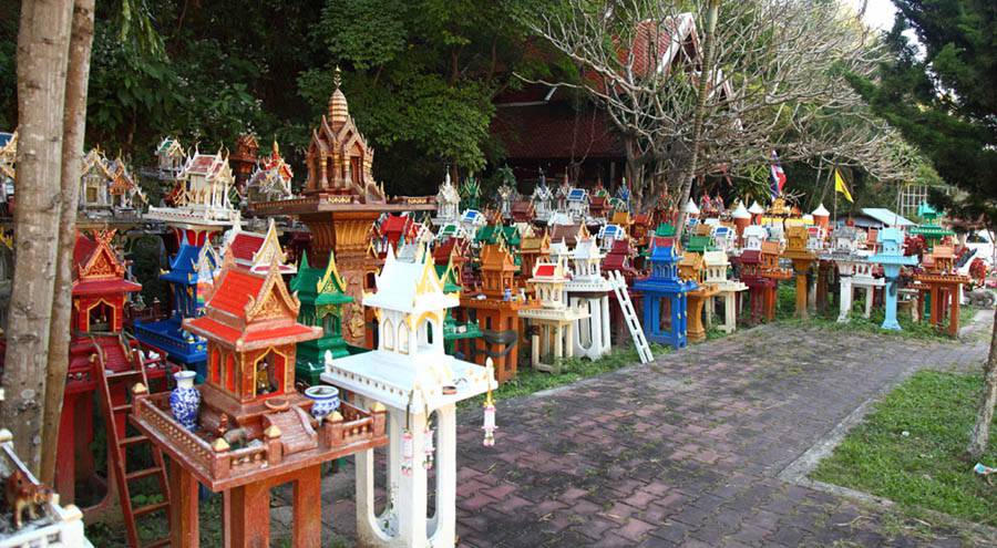 | So many offerings Offerings all around. Each of them has a small house. This can be seen often in Thailand. Very curious. |