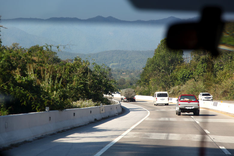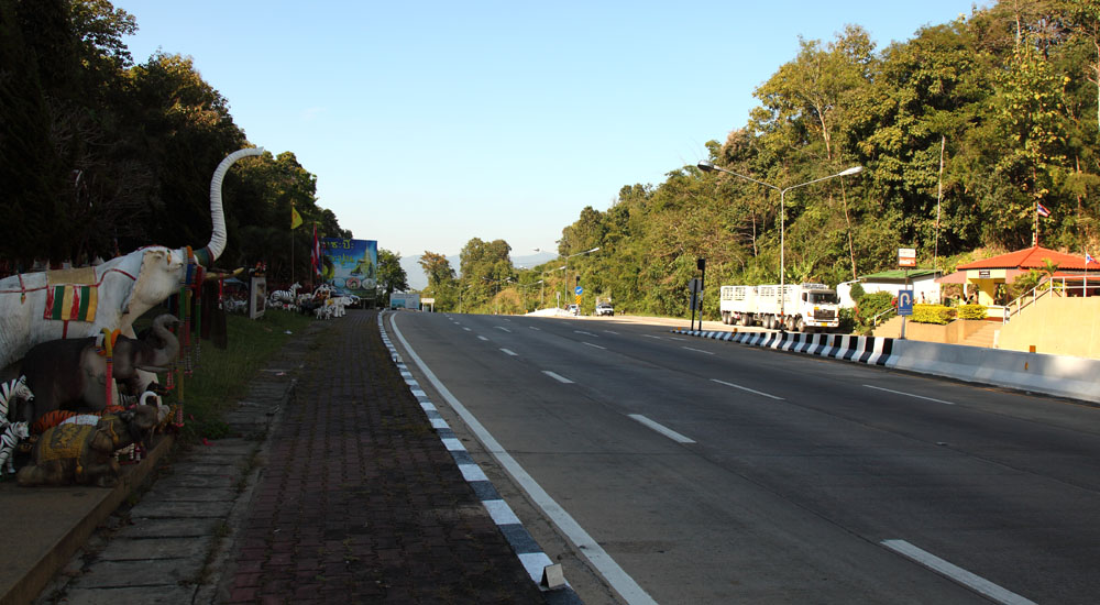 | The shine area is on top of the hill. Going forward in the picture will take you to Lamphun, then Chiang Mai. | |