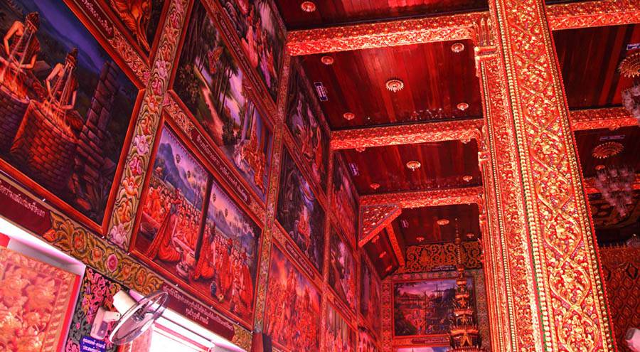 | Side wall. All of it is decorated with Buddhist paintings as well. |