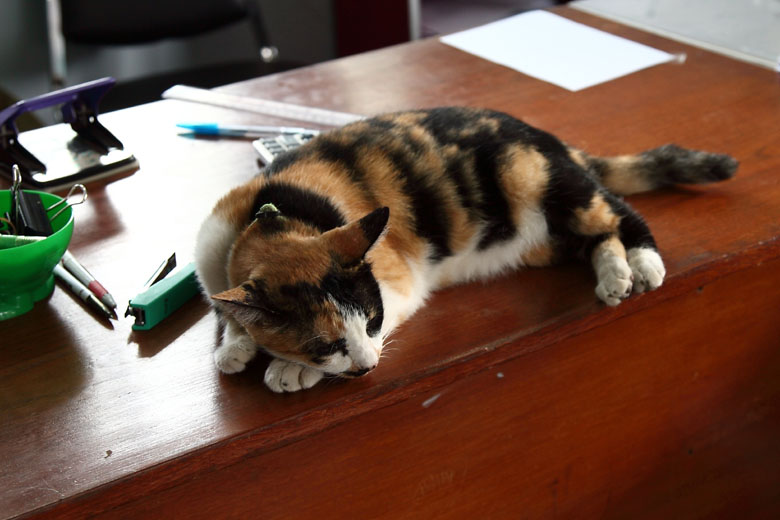A cat relaxing ! A cat was relaxing on the desk. The office has a very relaxing atmosphere for visitors. :D |