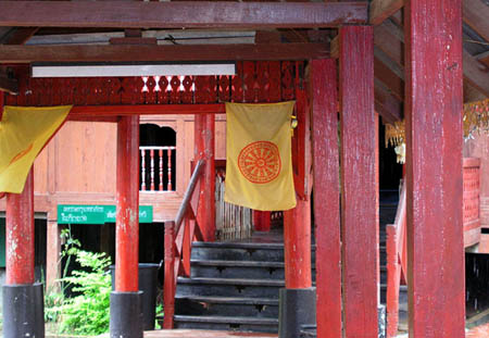 Photo Gallery of a temple standing peacefully but lonely, Wat Kam Ko, in Mae Hong Son of Northern Thailand.