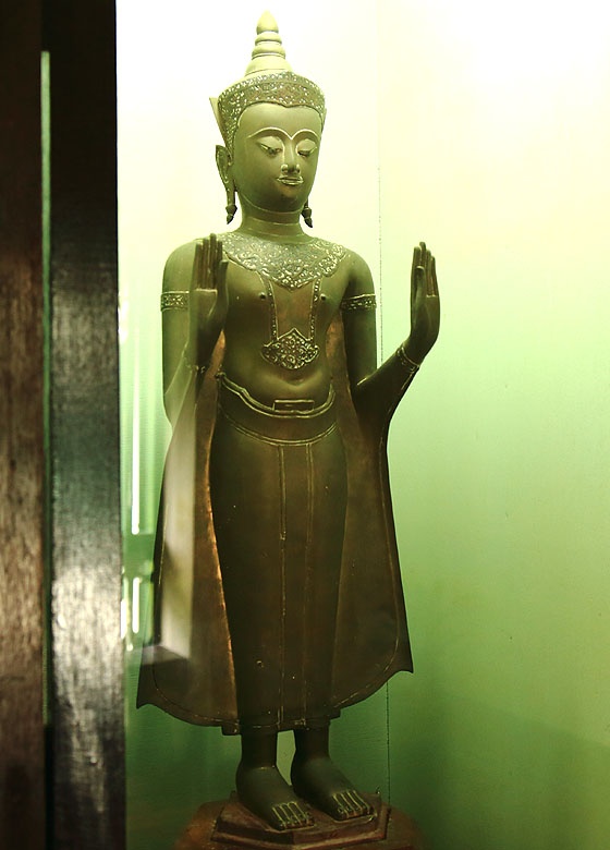 In the middle is seated four huge Buddhas of Maravijava (Subduing Mara) facing each direction. The mural painting inside is famous and it shows