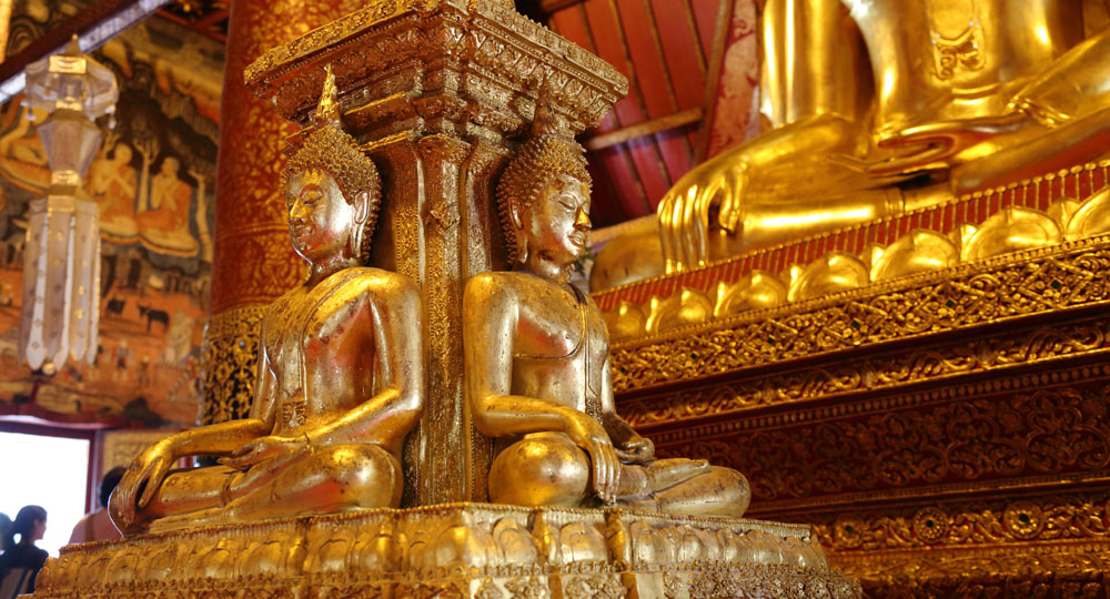 In front of the huge images, you'll see smaller sized 4 Buddha images facing