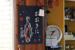 I found a small curtain in Japanese. It says Thank you in Kansai dialect. |