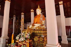 | In front of the huge images, you'll see smaller sized 4 Buddha images facing each direction.。 |