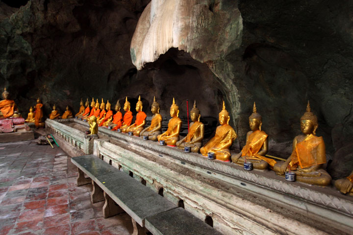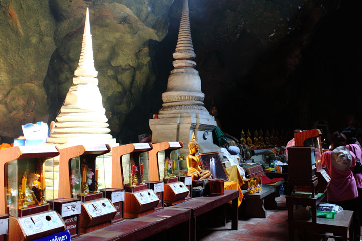 Including the three palaces above, there are a lot of places to visit in Petchaburi, such as Phra Nakhon Khiri Historical Park where the Phra Nakhon Khiri palace, one of the three palaces, was built on the hill (or the mountain), Wat Kampang Lang that shows the influence of Khmer, Cha-am beach that is the Thailand's longest white sand beach only two hours drive from Bangkok, Khao Luang Cave that is regarded as the largest and the most important cave of Phetchaburi with a lot of Buddha images inside.