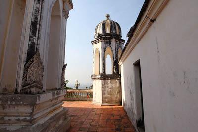 | Phra Nakhon Khiri Palace on the western peak The beautiful white palace, Phra Nakhon Khiri Palace, built in 1860 (*1) by Rama IV. I felt not so big building but very elegant. *1) not sure if it was in 1860, 1859 or 1858. |