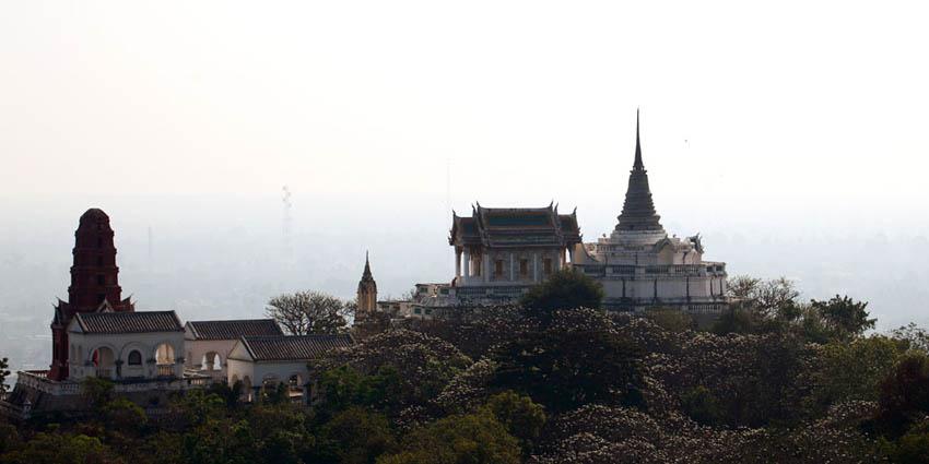 Wat Phra Kaew on the eastern peak. This is the temple built by Rama IV, in the same style of Wat Phra Kaew (Emerald Buddha) in the Grand Palace in Bangkok. |