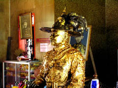 (People praying put pieces of leaf gold as they like on the statue.) |