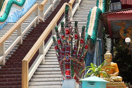 in Thailand, are glaring at the both sides of the stairs.