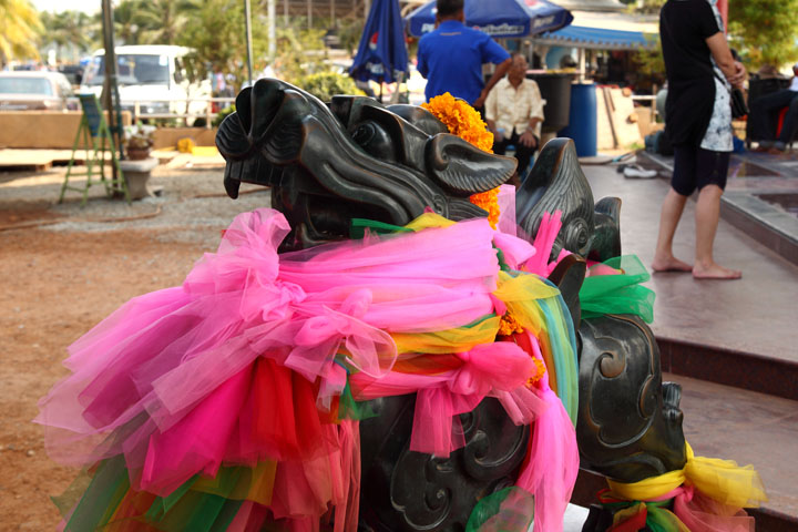 Is this a Lion ? He wears scarfs of worshipers' thanks. |