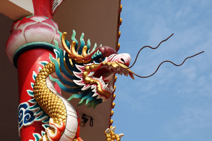 Dragons are decorated on the roof.