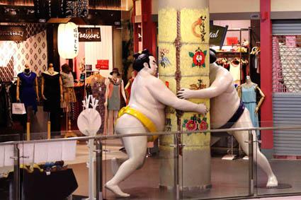 That's funny to see the Sumo wrestlers are fighting folding a column. |