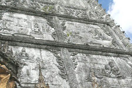 (The walls are beautifully carved with religious pictures.) |