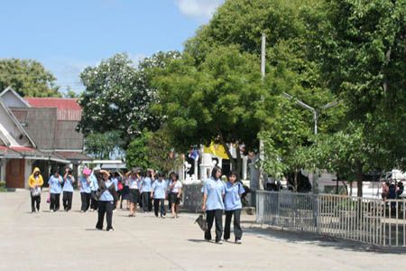 (A lot of students are walking around the temple.) |