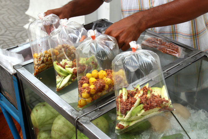 Fruits Fruits seasoned with sugar or salt are sold in a Thai style. |