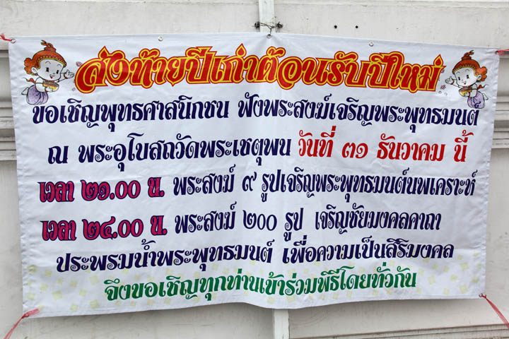Notice for New Year's It says nice monks will pray at nine at night and 200 monks will pray at midnight. |