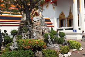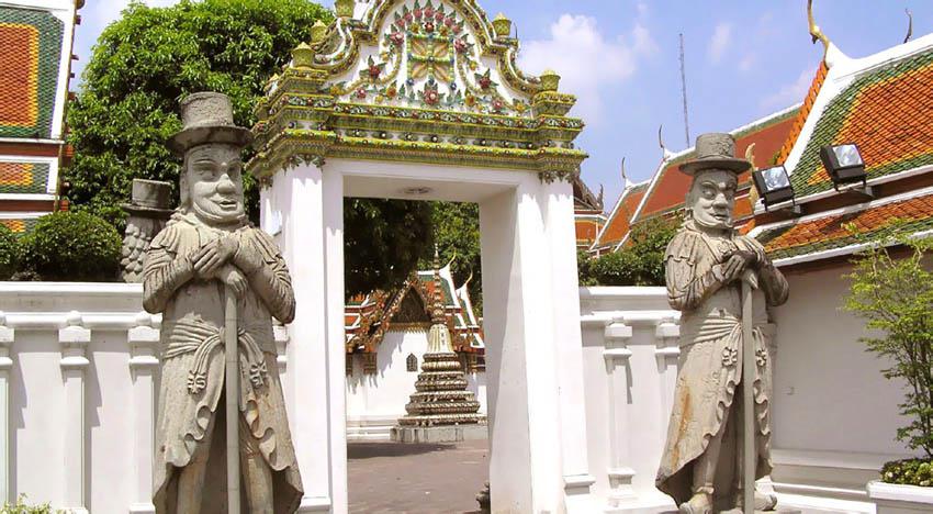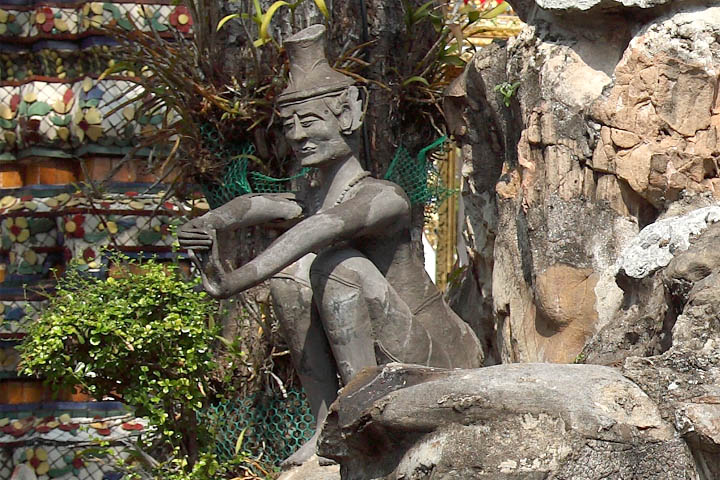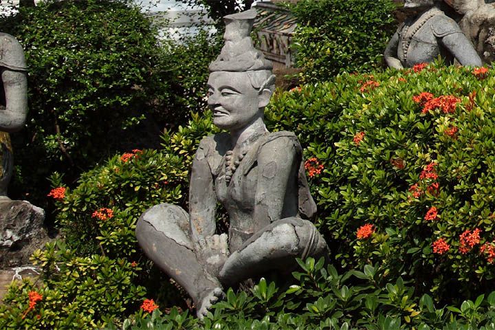 In the temple, which is considered to be King Ram I's favorite temple, there are plenty of religious buildings and objects worth to observe and to study from, such as the reclining Buddha, Phra Maha Chedi of the 4 reigns, statues of hermit demonstrating the various positions of massage, and several Chinese stone dolls.