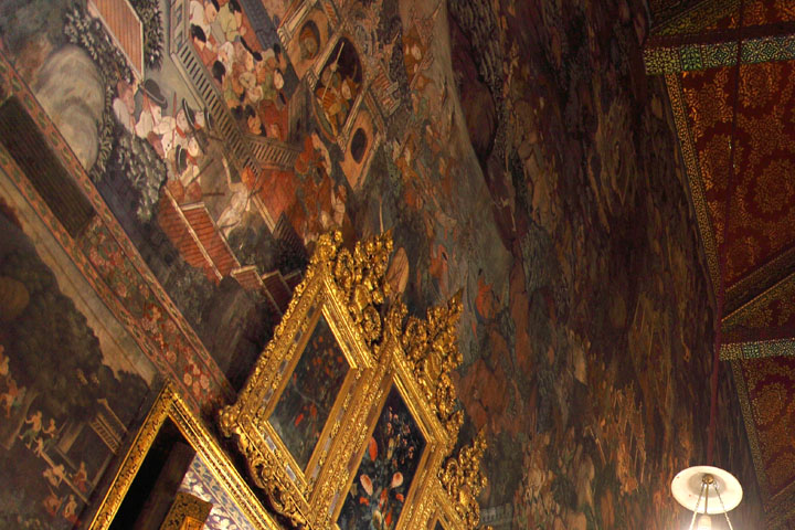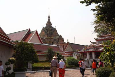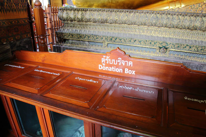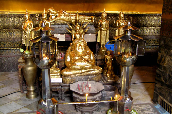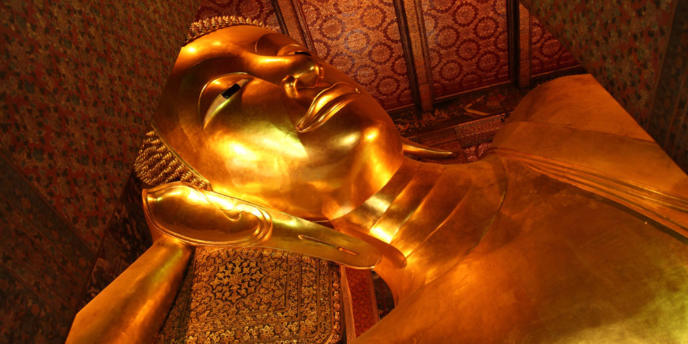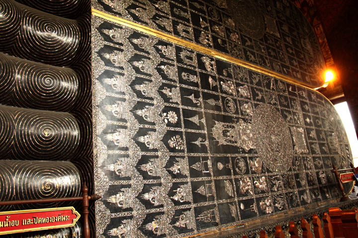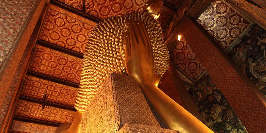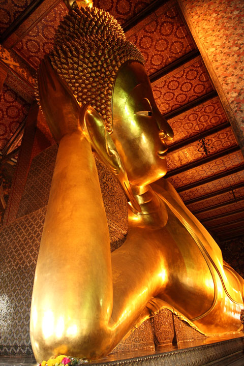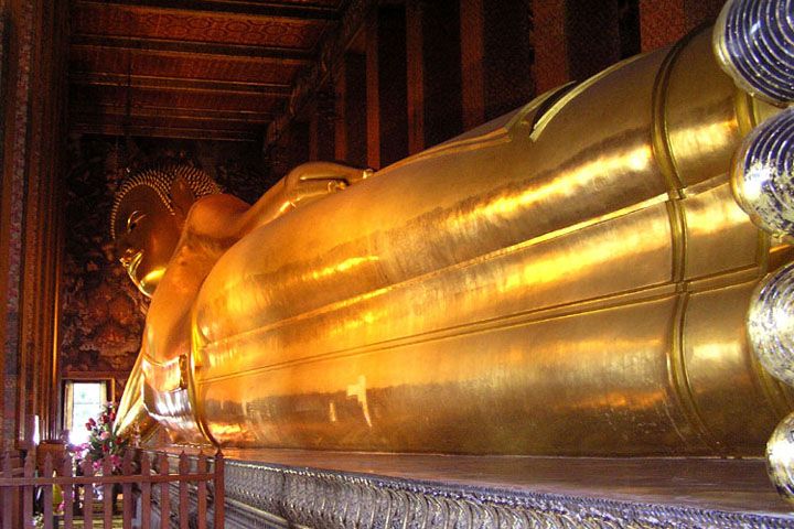 | The famous temple in Bangkok, Wat Pho. The huge Reclining Buddha in this temple is especially famous. The image of a reclining Buddha represents the dying moment of Buddha, the moment entering into nirvana. It says: