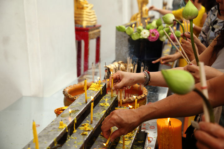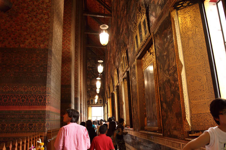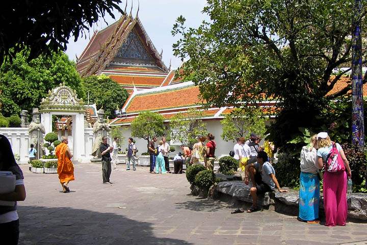 | Let's go to the temple People going around in a sightseeing car from the Grand Palace. If you want to drop by Wat Pho, it's okay just to get off on the way. |