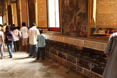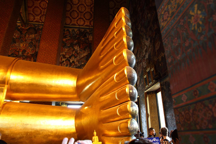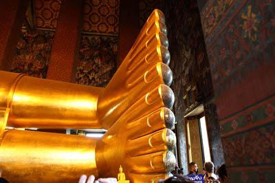 Although you'll see other reclining Buddha images in Wat Yai Chai Mongkon in Ayuttaya or other places in Thailand, the Buddha image in Wat Pho is really amazing: The whole body is covered in gold leaf and it's 46 metres long and 15 metres high. You must go and check it once at least. |