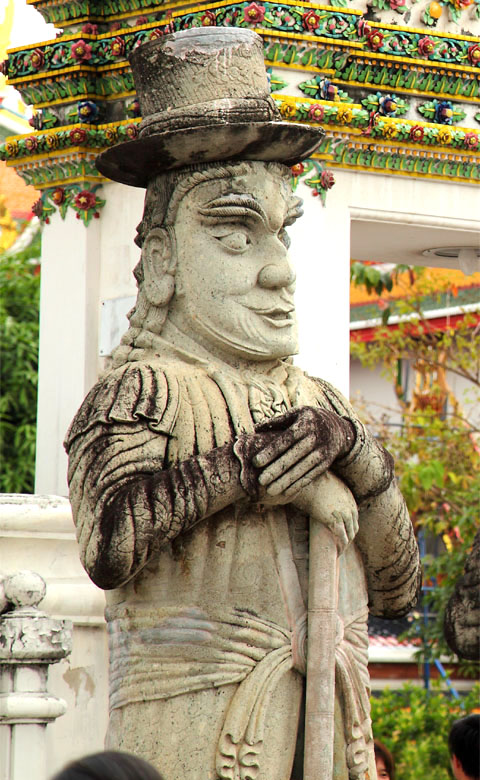 | As the Grand Palace or Wat Arun has the same kinds of images, it looks like this temple was also influenced