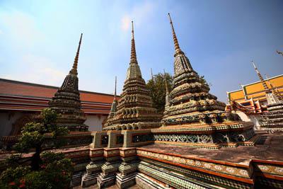 As well as the huge Reclining Buddha, a group of four huge chedis, Phra