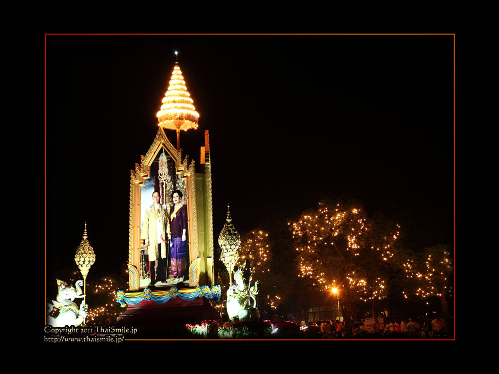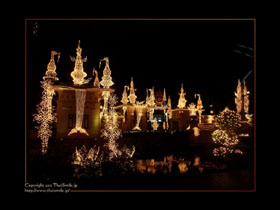 | Chitralada Villa, Dusit Palace バンコクでの国王の住居。その宮殿の前の夜の風景です。 電飾されて、とても綺麗ですね。 |