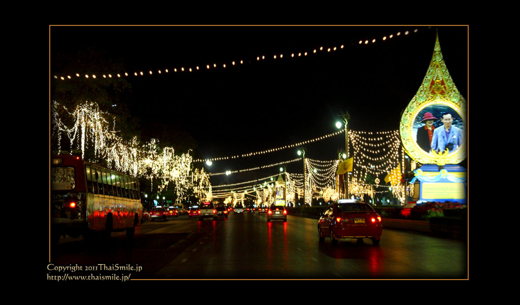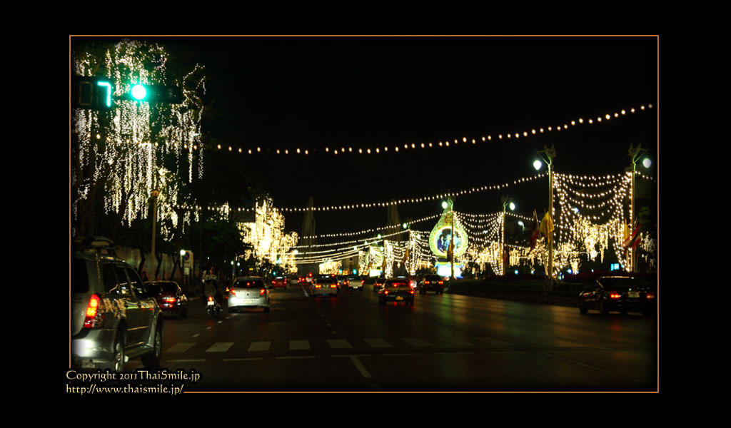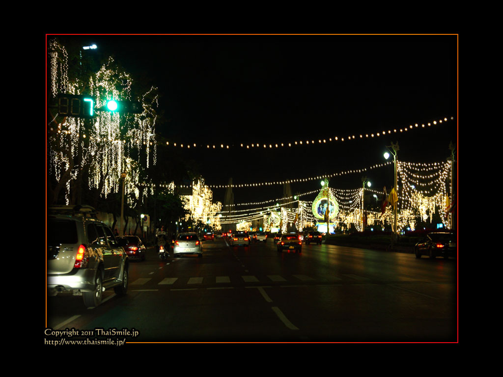 | Streets around the Grand Palace. They are decoreated with a lot of lights as well. | ||