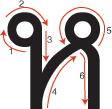 Most letters have small circles. If the character has circles, start from the circle and write the letter all (without lifting your pencil from the paper).