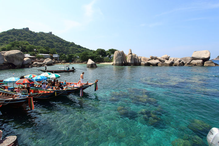 タオ島はバンコクから南へ約430Km、サムイ島からはフェリーでおよそ2時間(途中パンガン島を経由)の南の島。