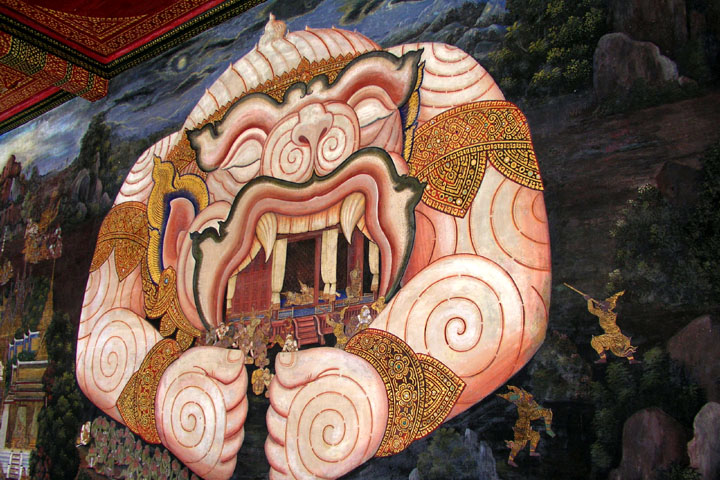 壁画にタイでは有名な物語「ラーマキエン」が描かれてますが、その中で一番のお気に入りが写真の図。